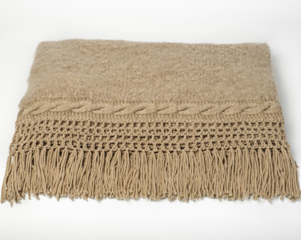 Fluffy kid mohair with horizontal cable and tassels in merino wool